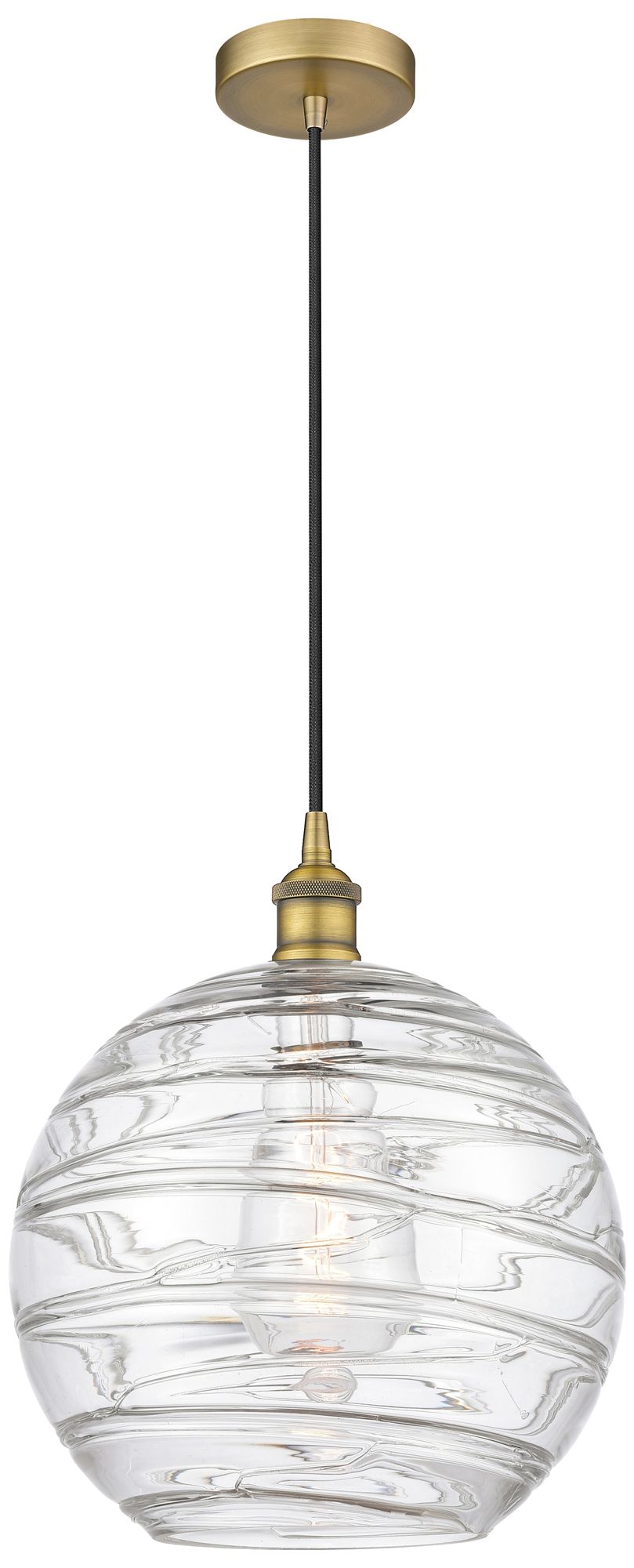 Athens 12" Brushed Brass Mini Pendant w/ Clear Deco Swirl Shade