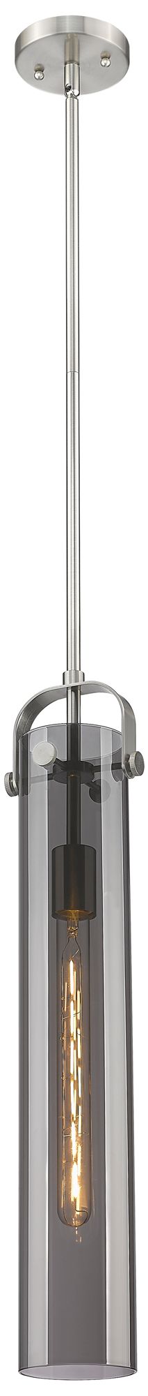 Pilaster 5" Wide Stem Hung Satin Nickel Pendant With Smoke Shade