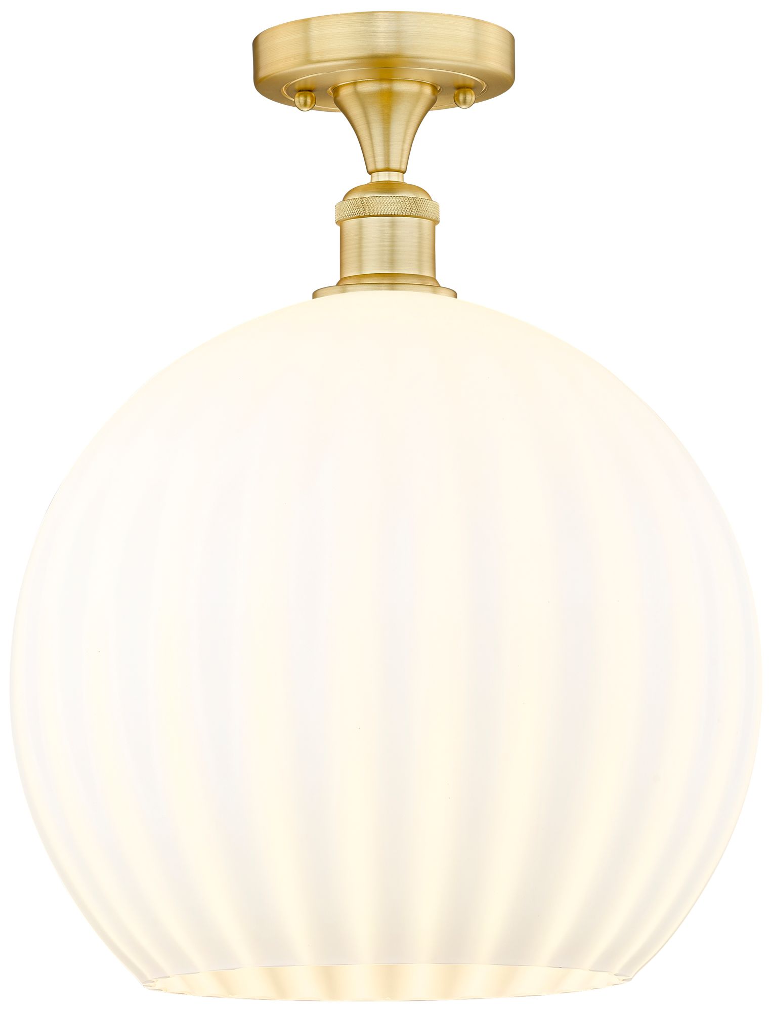 Edison 13.75" Wide Satin Gold Semi-Flush Mount With White Venetian Sha