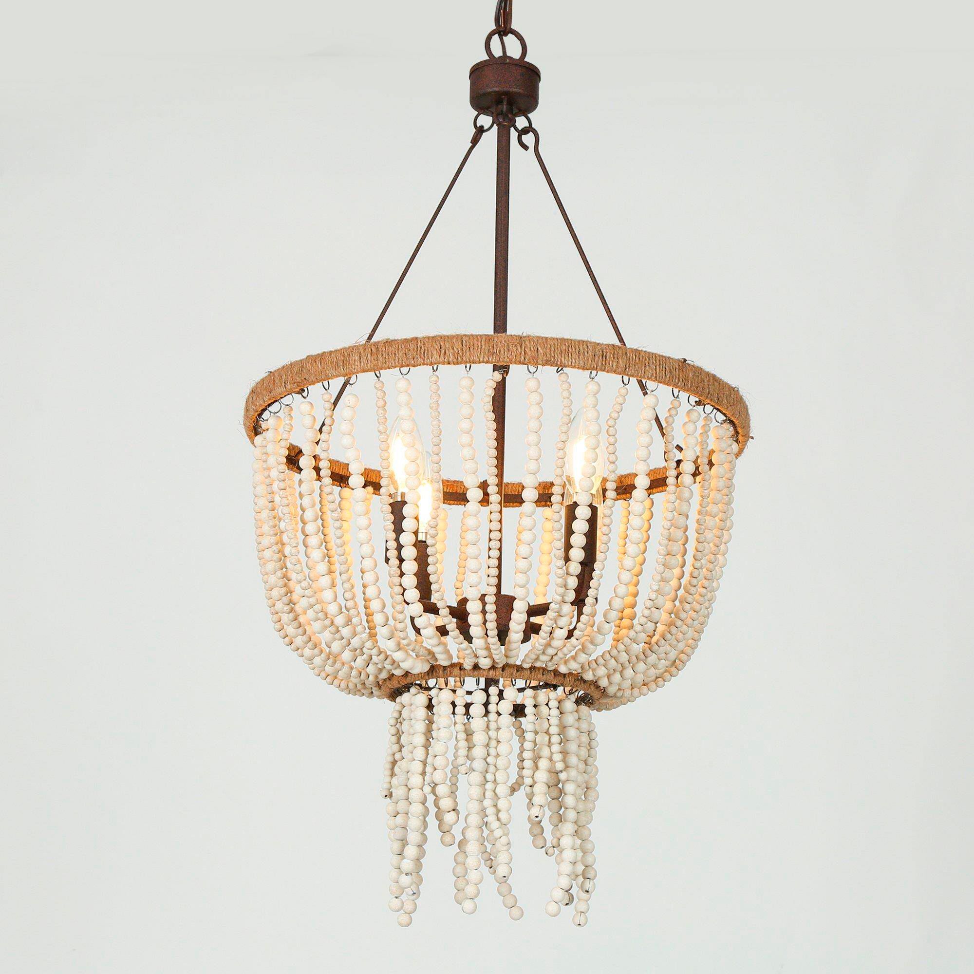 Abajlen 17" Wide Gold and White Wood Bead 4-Light Chandelier