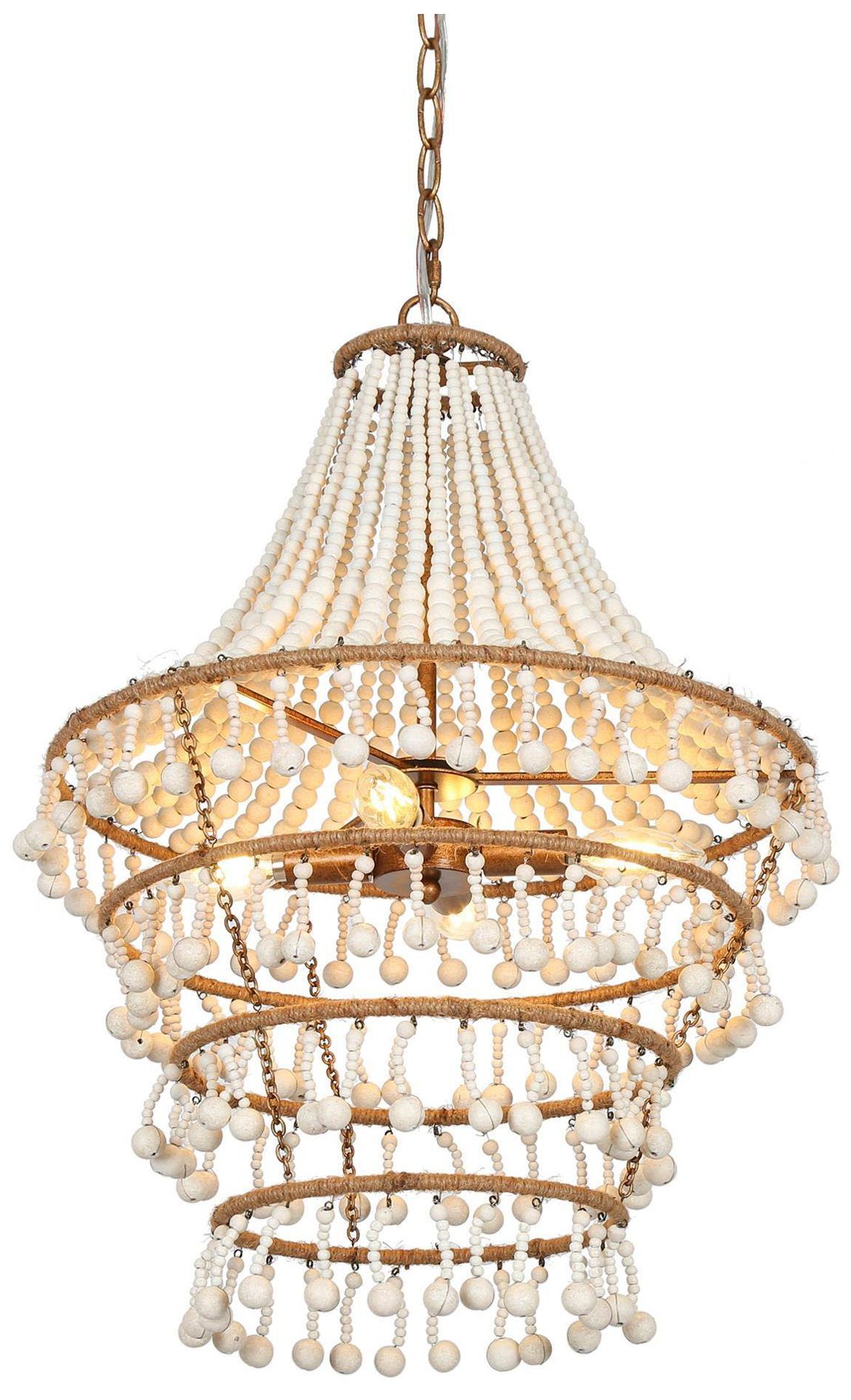4-Lights 17W" Coastal Distressed Brass White Wood Beads Chandelier