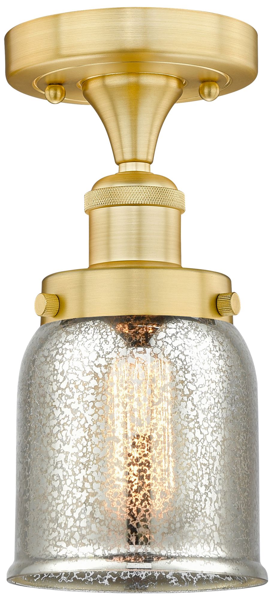 Bell 5"W Satin Gold Semi.Flush Mount With Silver Plated Mercury Glass