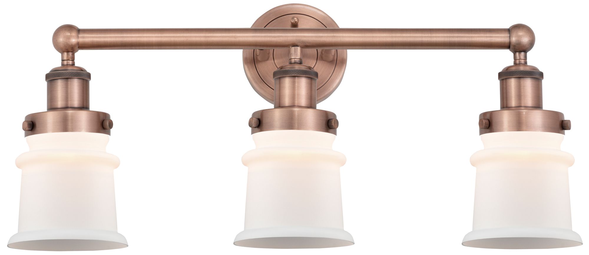 Canton 23.25"W 3 Light Antique Copper Bath Vanity Light With White Sha