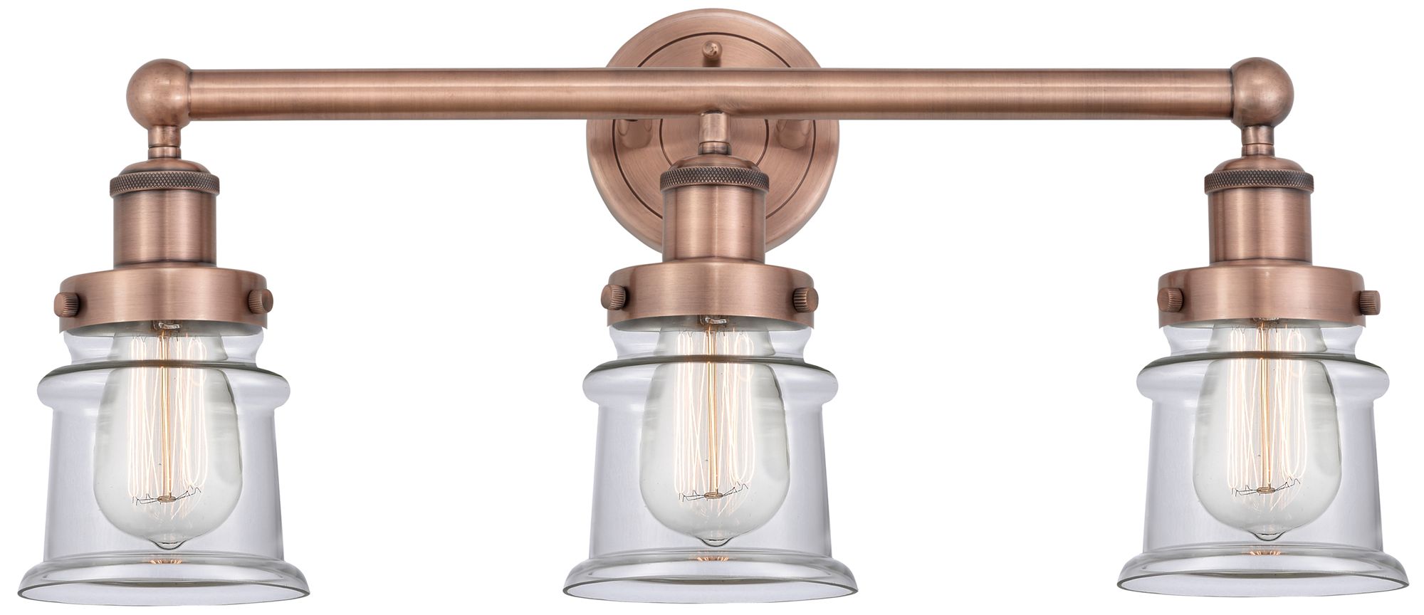 Canton 23.25"W 3 Light Antique Copper Bath Vanity Light With Clear Sha