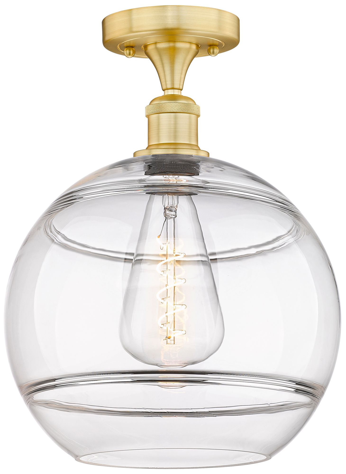 Edison Rochester 12" Wide Satin Gold Semi-Flush Mount With Clear Shade