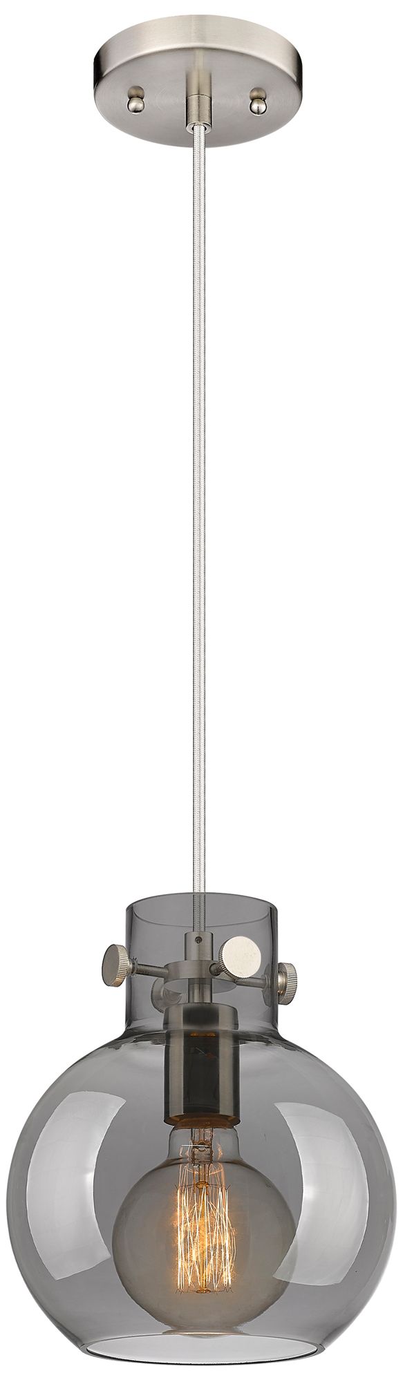 Newton Sphere 8"W Satin Nickel Cord Hung Pendant With Plated Smoke Sha