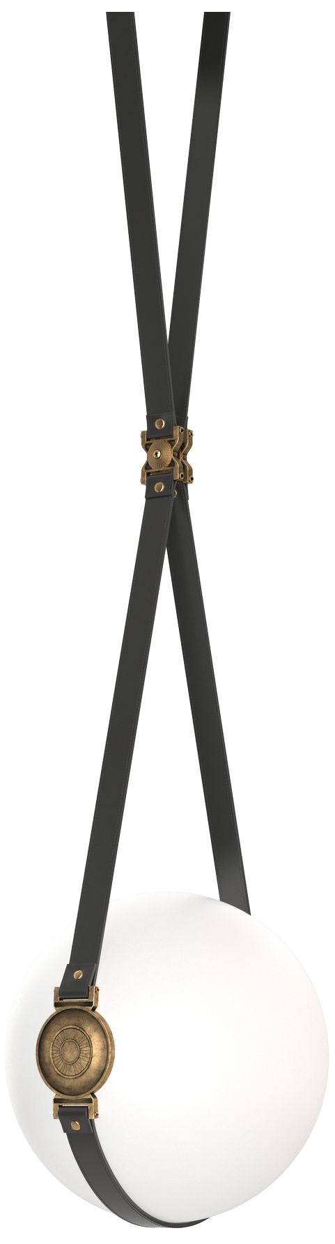 Derby 10.9"W Brass Accented LED Pendant w/ Black Straps and Opal Shade