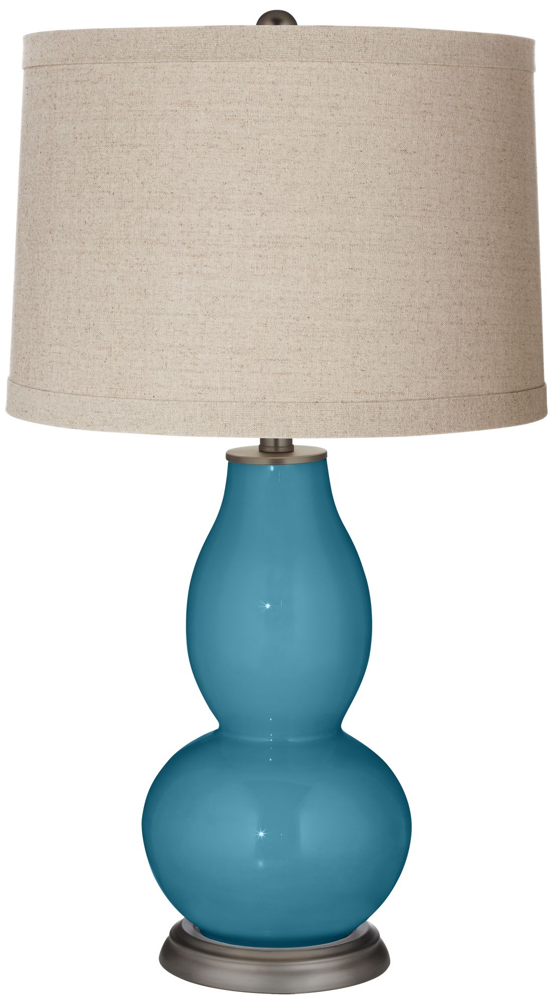 Color Plus Double Gourd 28 3/4" Linen Shade Great Falls Blue Lamp