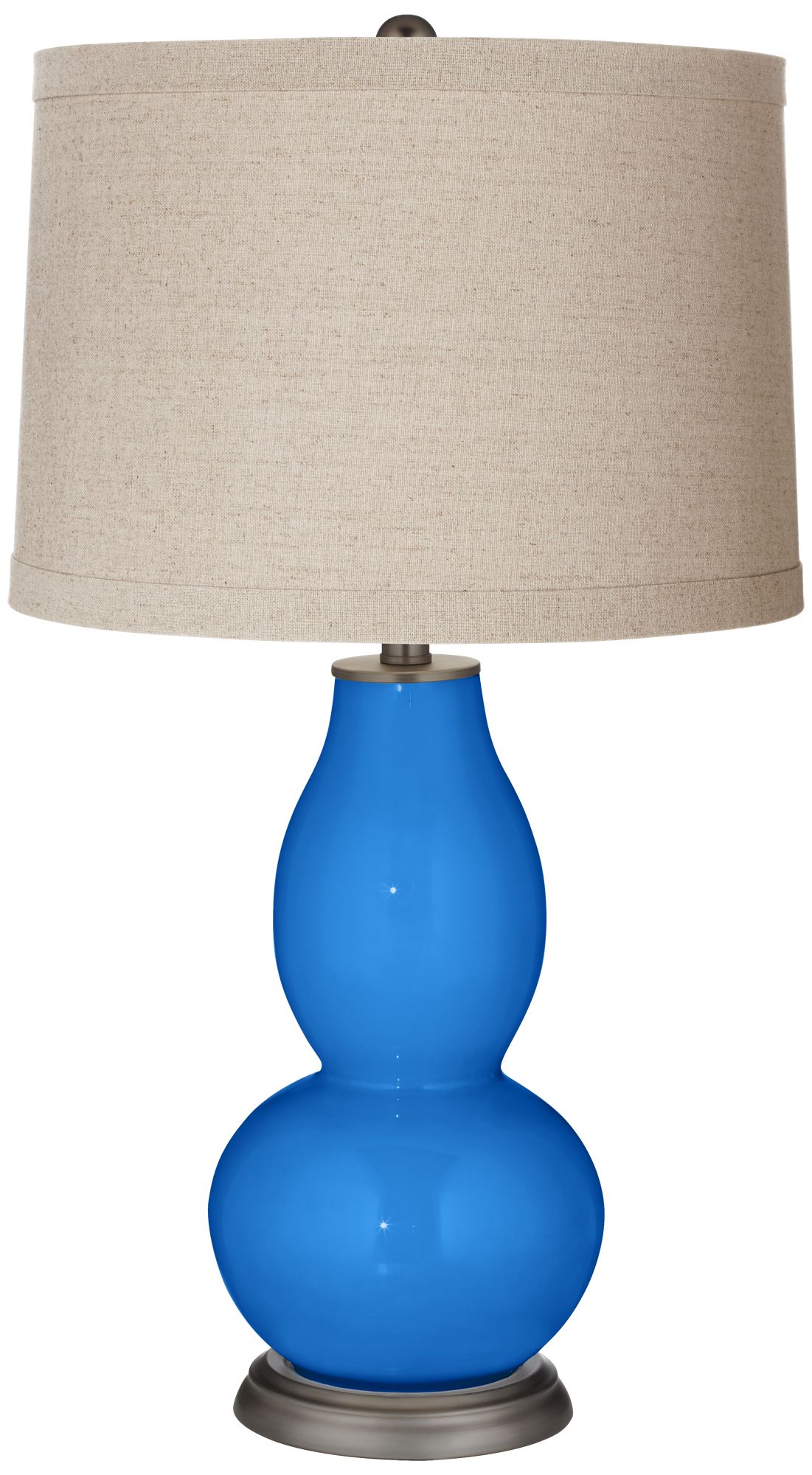Color Plus Double Gourd 28 3/4" Linen Shade Royal Blue Table Lamp