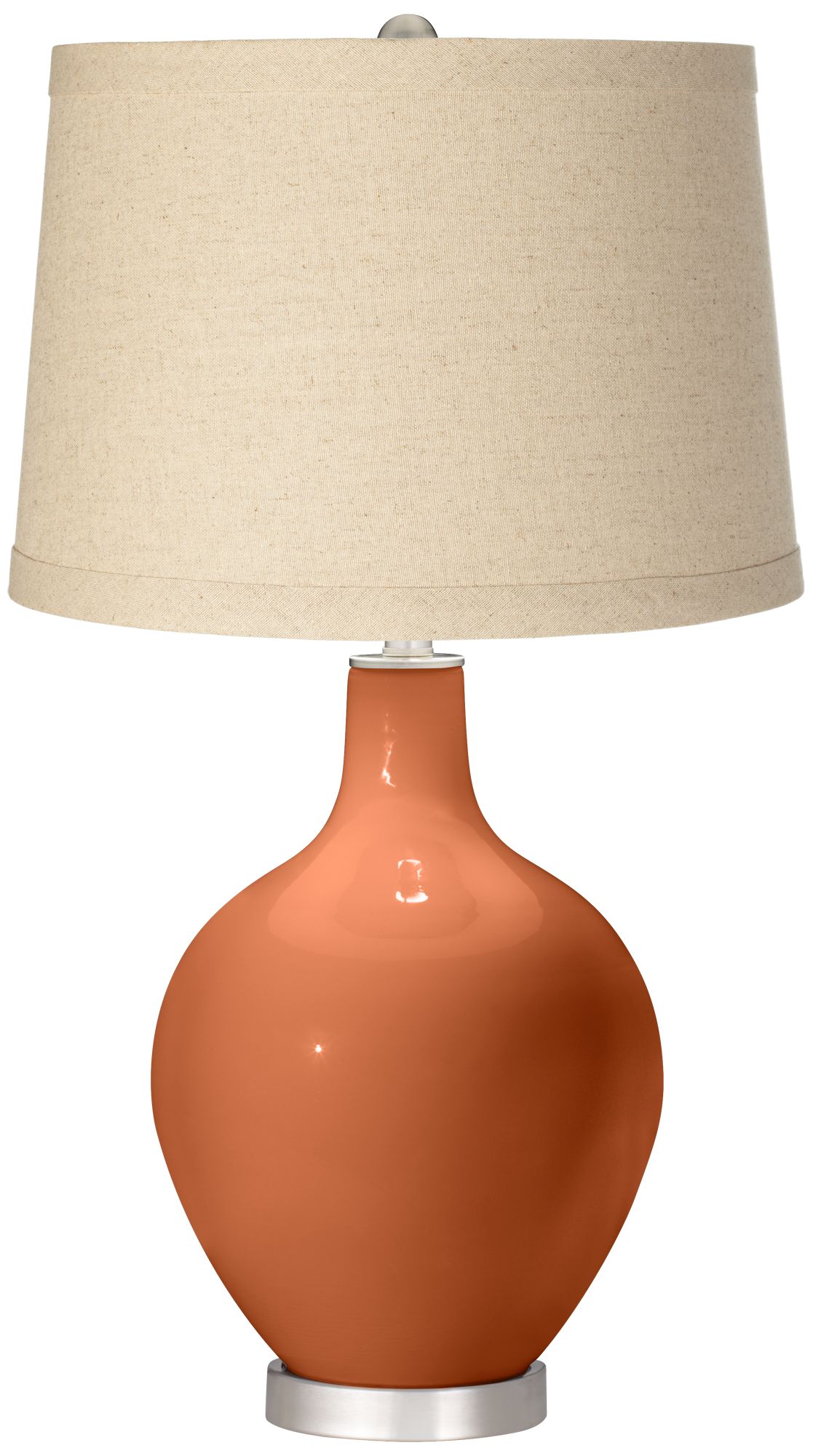 Color Plus Ovo 28 1/2" Burlap Drum Shade Robust Orange Table Lamp