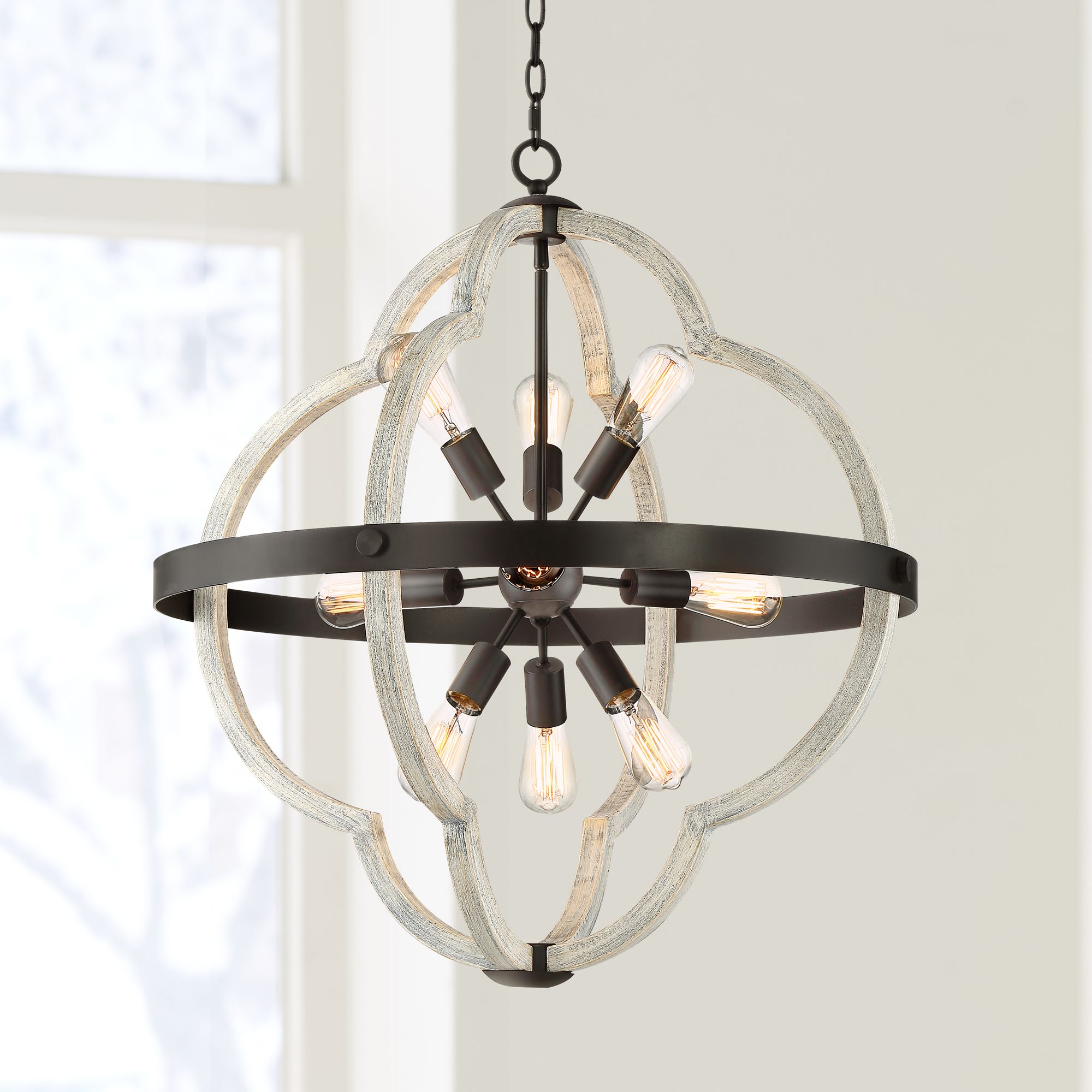 Paxton 28" Wide Black and Gray Wood 9-Light Sputnik Pendant