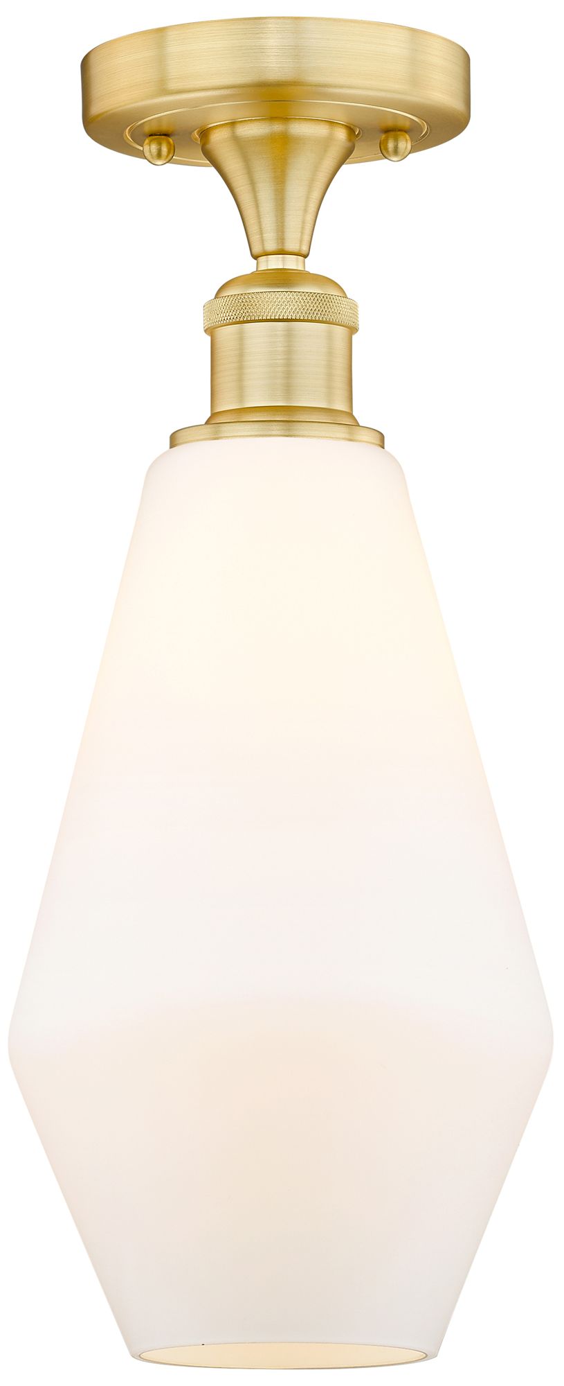 Cindyrella 7"W Satin Gold Semi.Flush Mount w/ Cased Matte White Glass