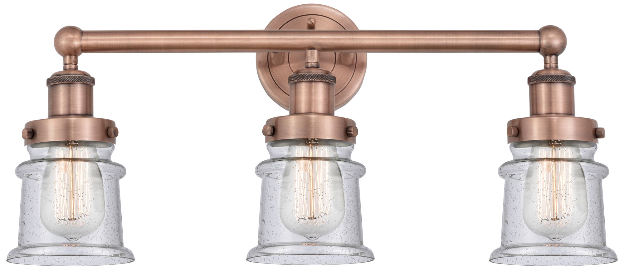 Canton 23.25"W 3 Light Antique Copper Bath Vanity Light With Seedy Sha
