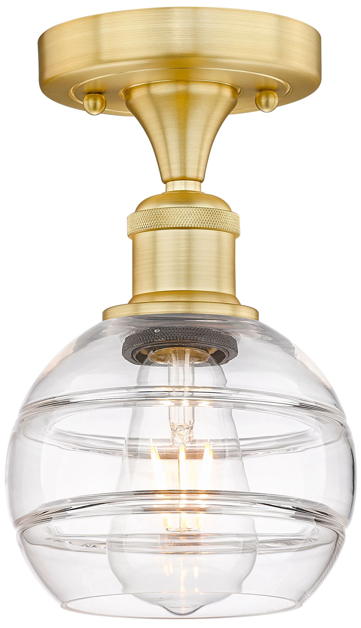 Edison Rochester 5.88" Wide Satin Gold Semi-Flush Mount With Clear Sha