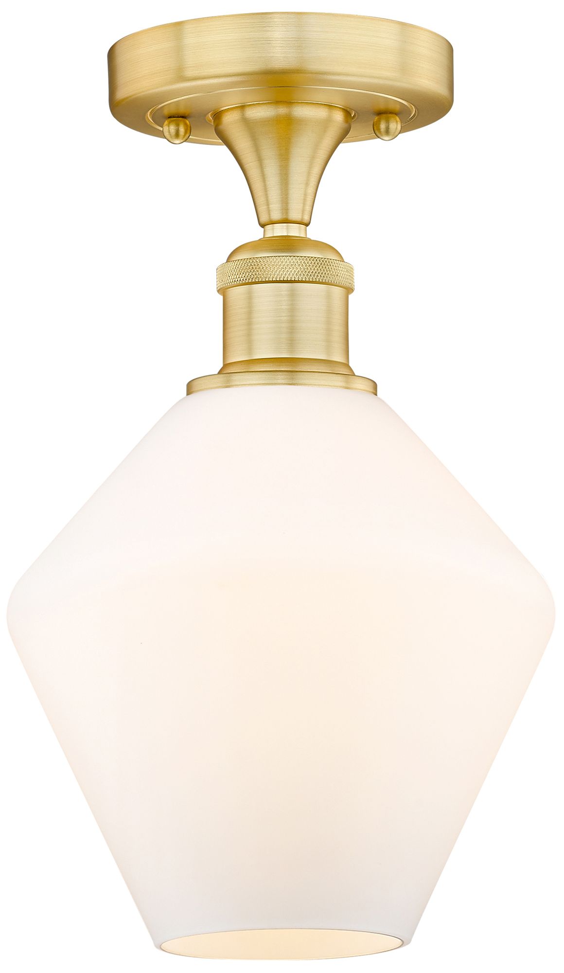 Cindyrella 8"W Satin Gold Semi.Flush Mount w/ Cased Matte White Glass