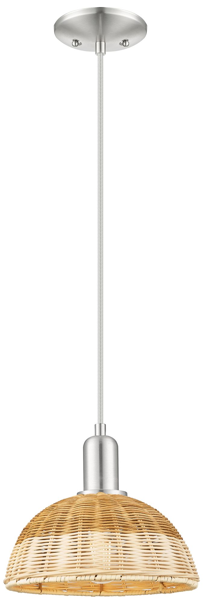 Ballston Dome 9"W Brushed Nickel Cord Mini Pendant w/ Fiber Shade