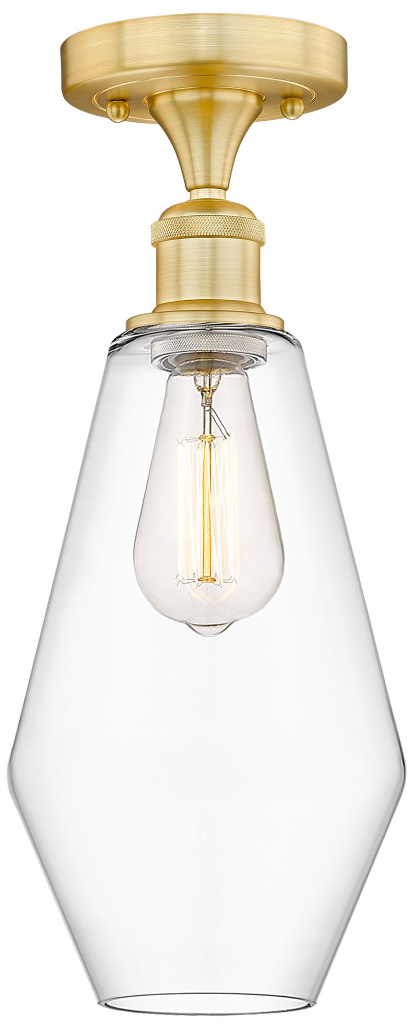Cindyrella 7" Wide Satin Gold Semi.Flush Mount With Clear Glass Shade