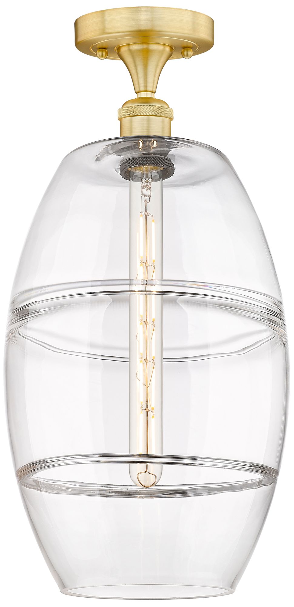 Edison Vaz 10" Wide Satin Gold Semi-Flush Mount With Clear Shade