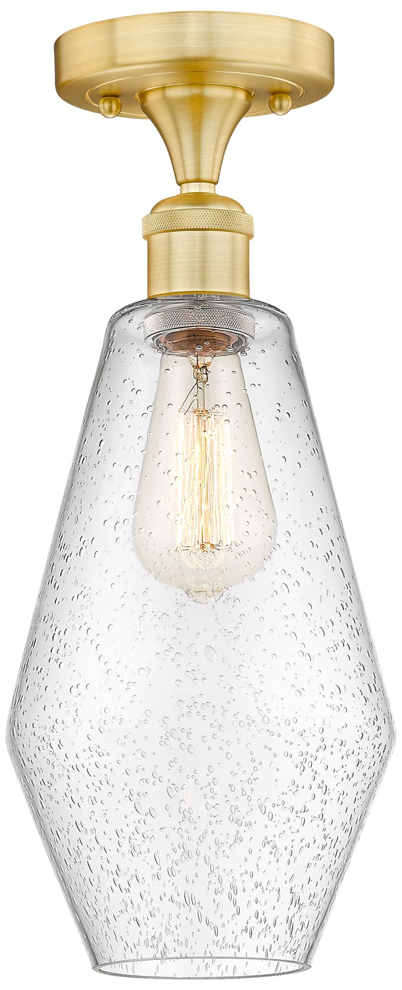 Cindyrella 7" Wide Satin Gold Semi.Flush Mount With Seedy Glass Shade