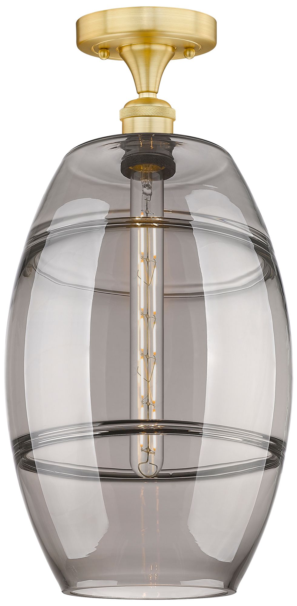 Edison Vaz 10" Wide Satin Gold Semi-Flush Mount With Light Smoke Shade