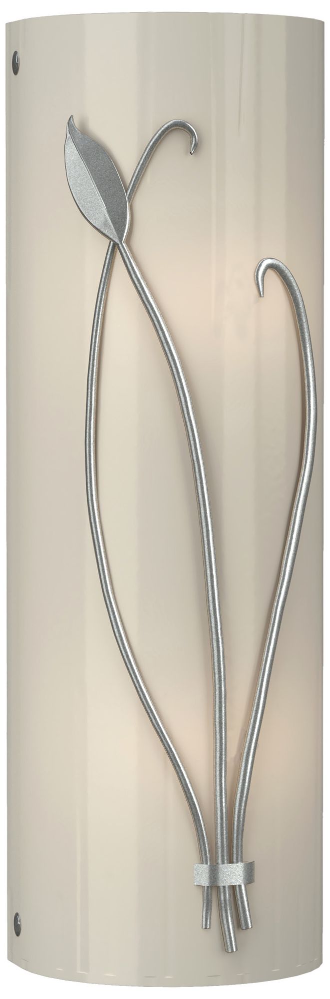 Forged Leaf and Stem 17"H Vintage Platinum Sconce w/ Ivory Art Glass S