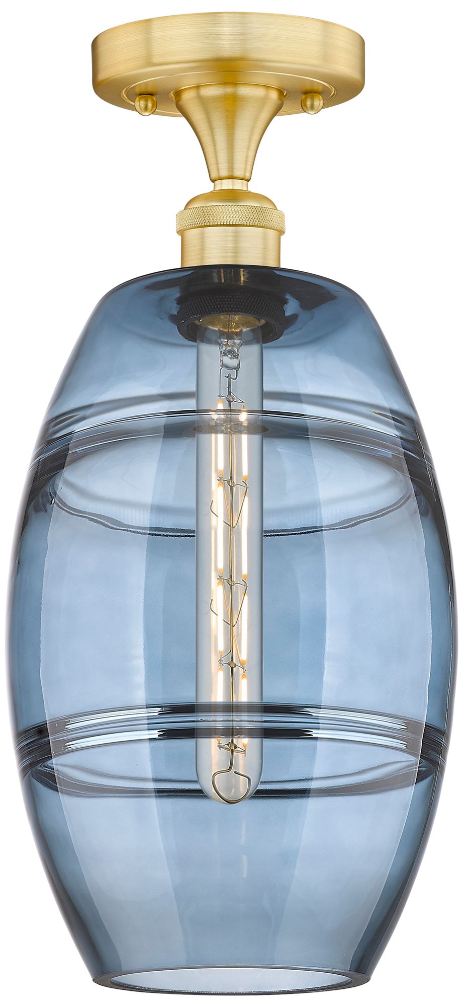 Edison Vaz 8" Wide Satin Gold Semi-Flush Mount With Princess Blue Shad