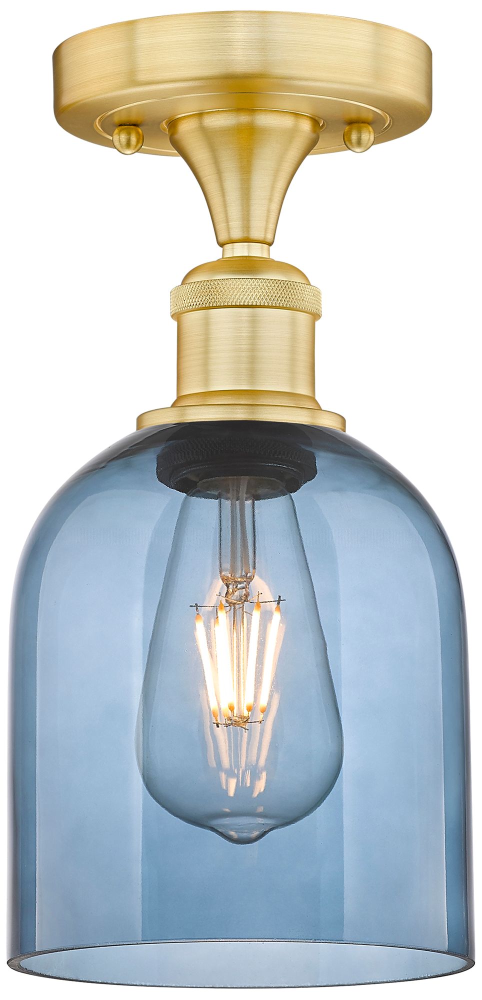 Edison Bella 5.5" Wide Satin Gold Semi-Flush Mount With Princess Blue