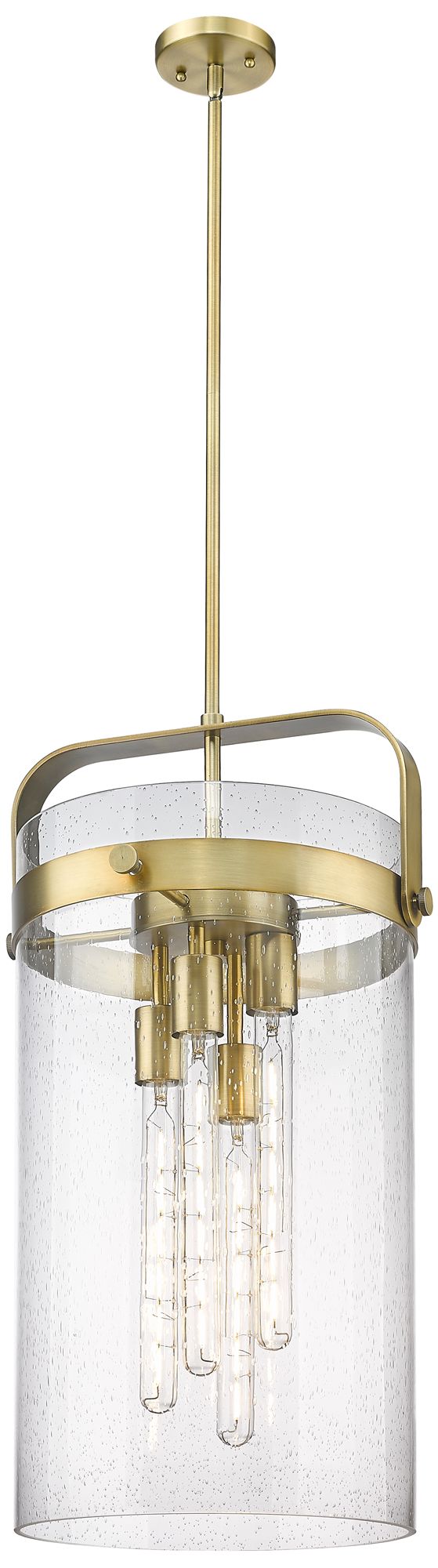 Pilaster 13.38" Wide 4 Light Stem Hung Brushed Brass Pendant w/ Seedy