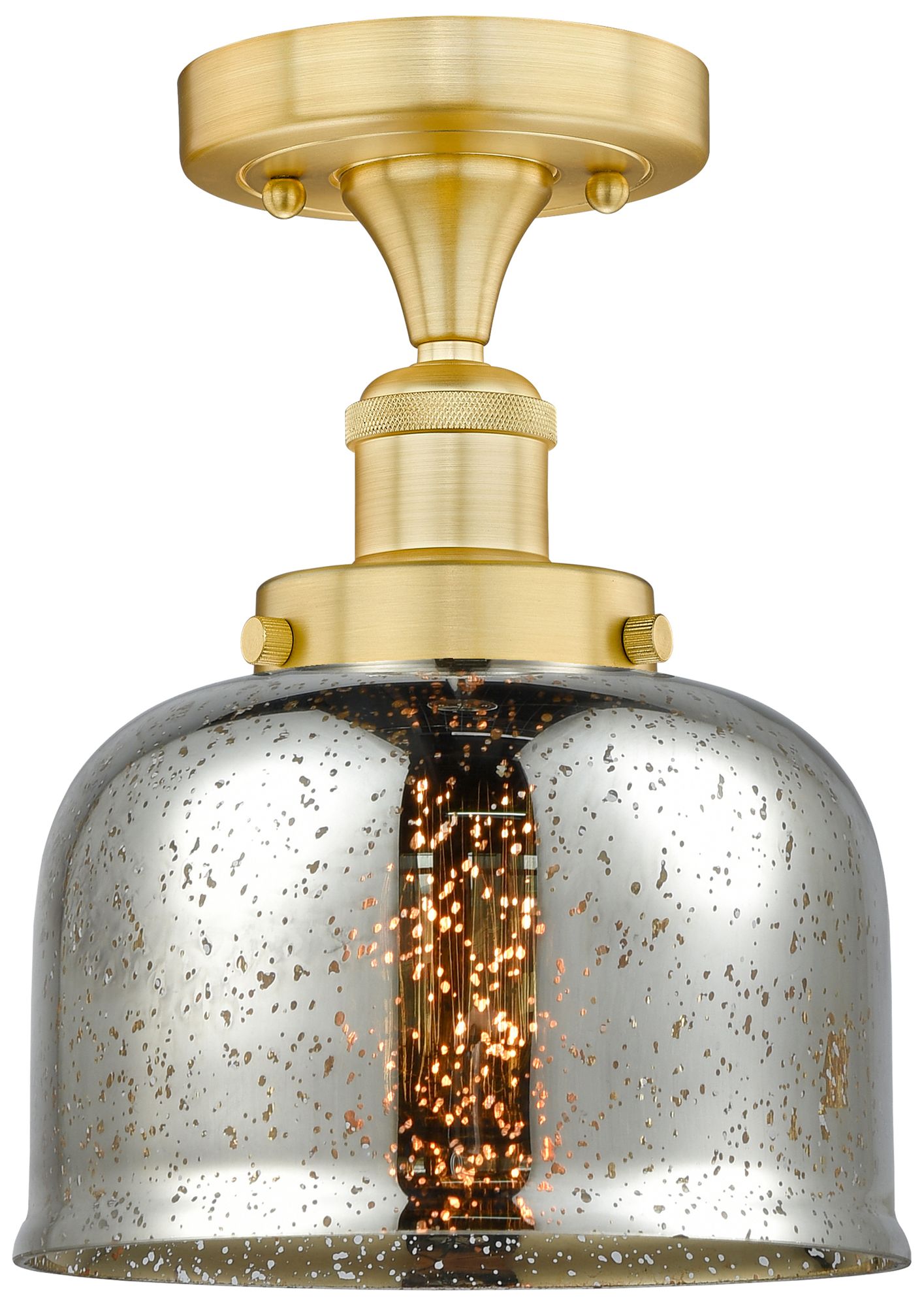 Bell 7.75"W Satin Gold Semi.Flush Mount w/ Mercury Glass Shade