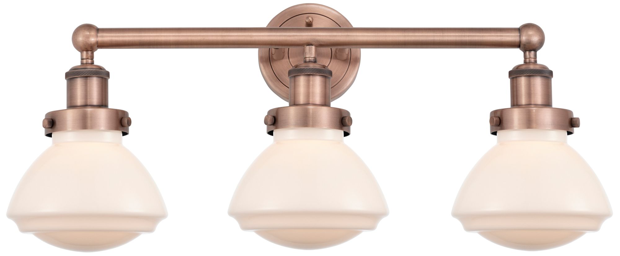 Olean 24.5"W 3 Light Antique Copper Bath Vanity Light With White Shade