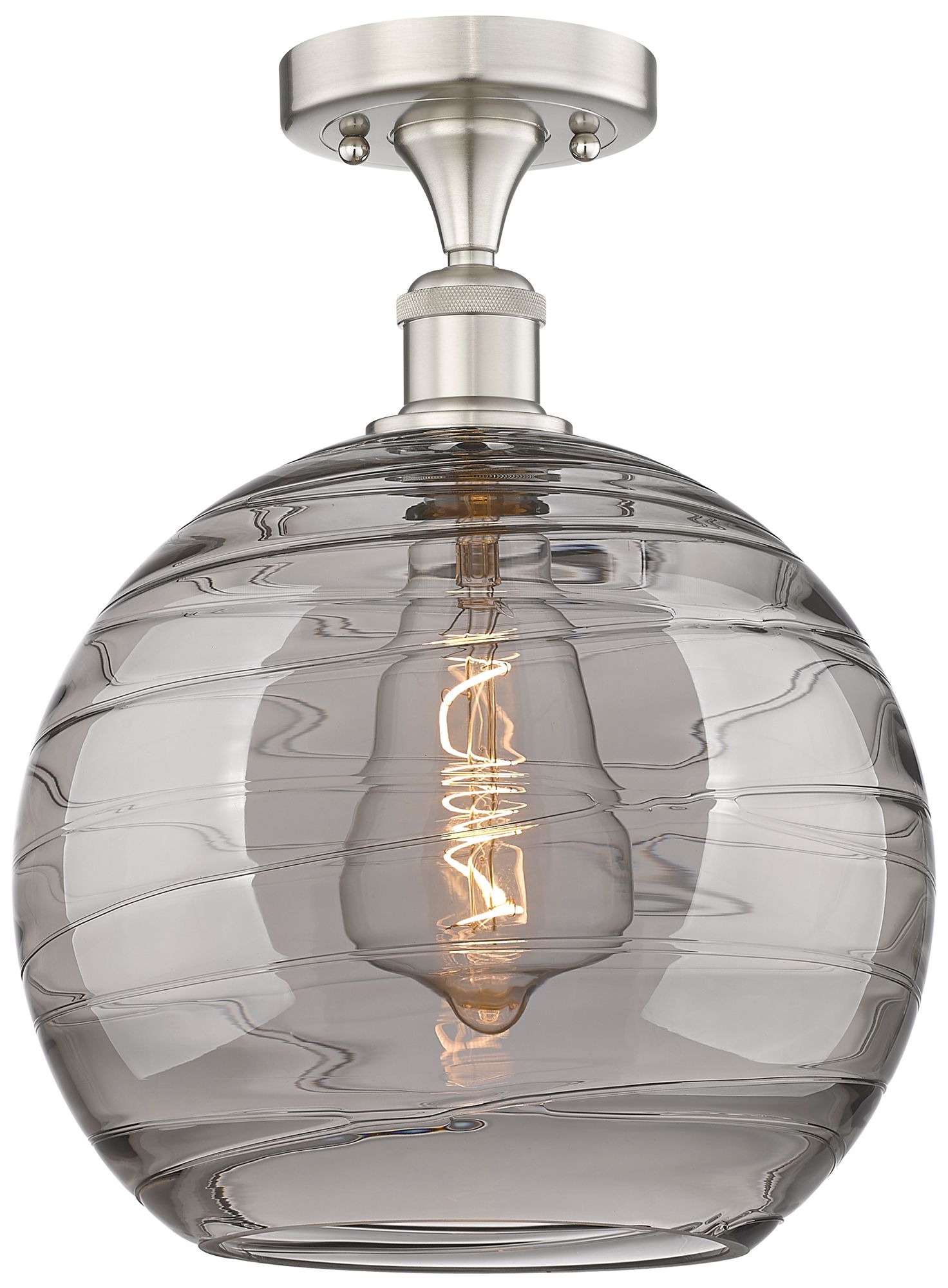 Edison Athens 12"W Satin Nickel Semi-Flush Mount w/ Smoke Swirl Shade