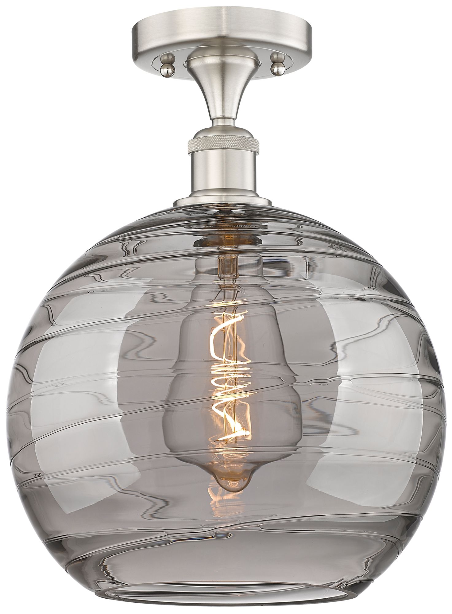 Edison Athens 13.75"W Satin Nickel Semi-Flush Mount w/ Smoke Swirl Sha