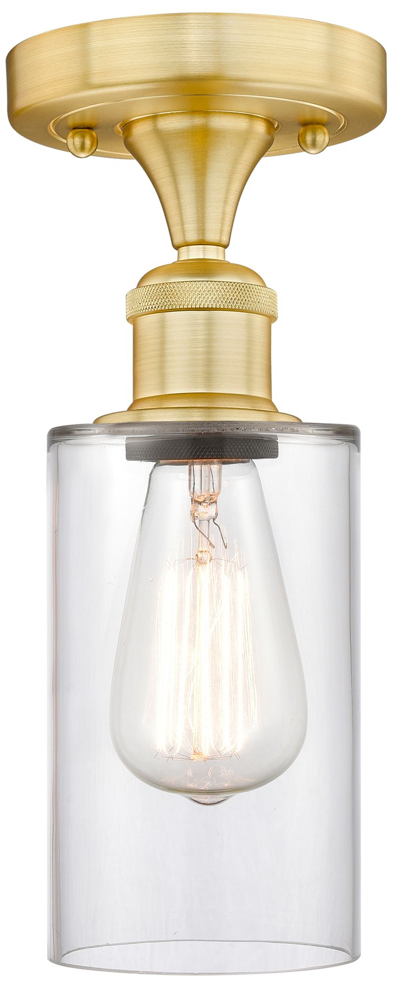 Clymer 3.88" Wide Satin Gold Semi.Flush Mount With Clear Glass Shade