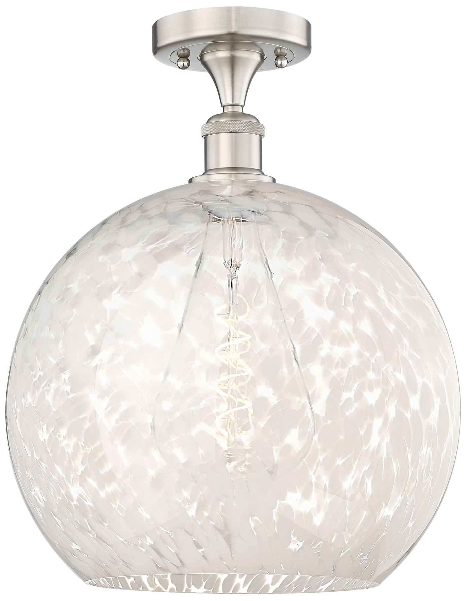 Edison 13.75"W Satin Nickel Semi-Flush Mount w/ White Mouchette Shade