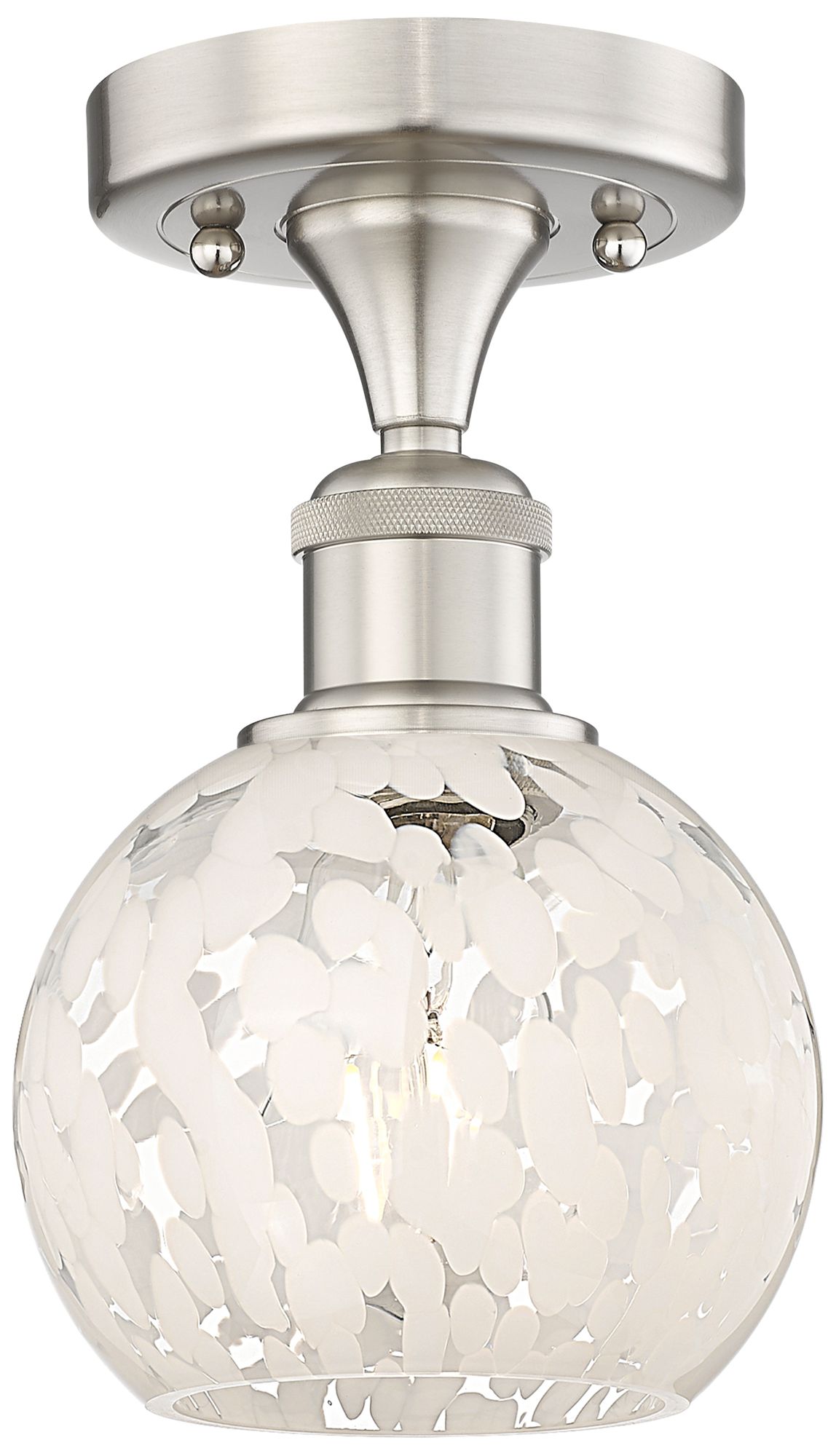 Edison 6"W Brushed Satin Nickel Semi-Flush Mount w/ White Mouchette Sh