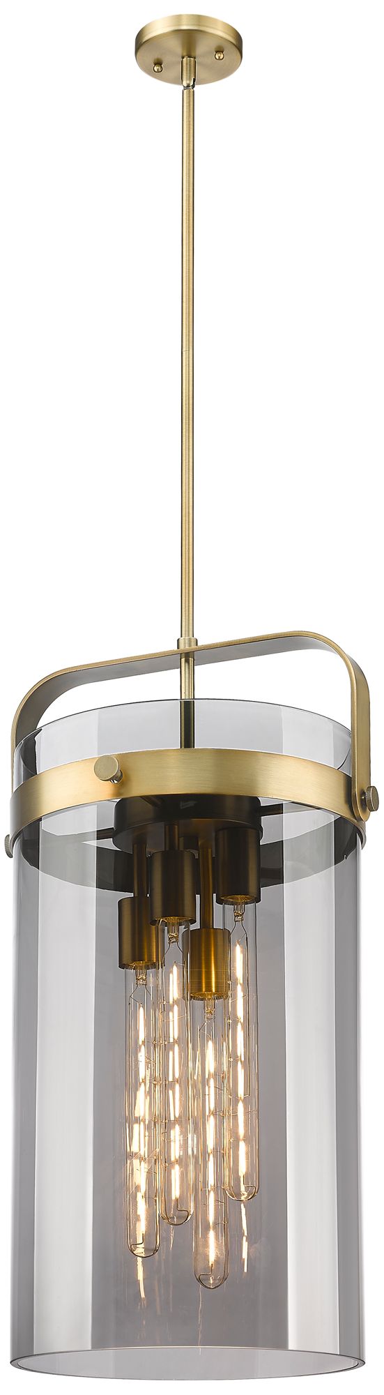 Pilaster 13.38" Wide 4 Light Stem Hung Brushed Brass Pendant w/ Smoke