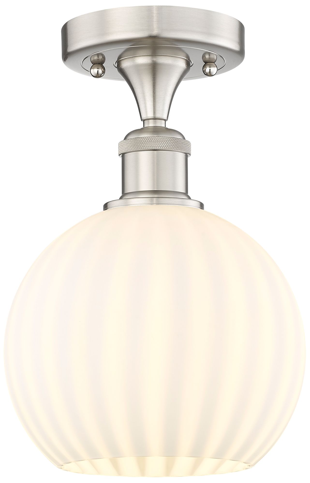 Edison 8"W Brushed Satin Nickel Semi-Flush Mount w/ White Venetian Sha