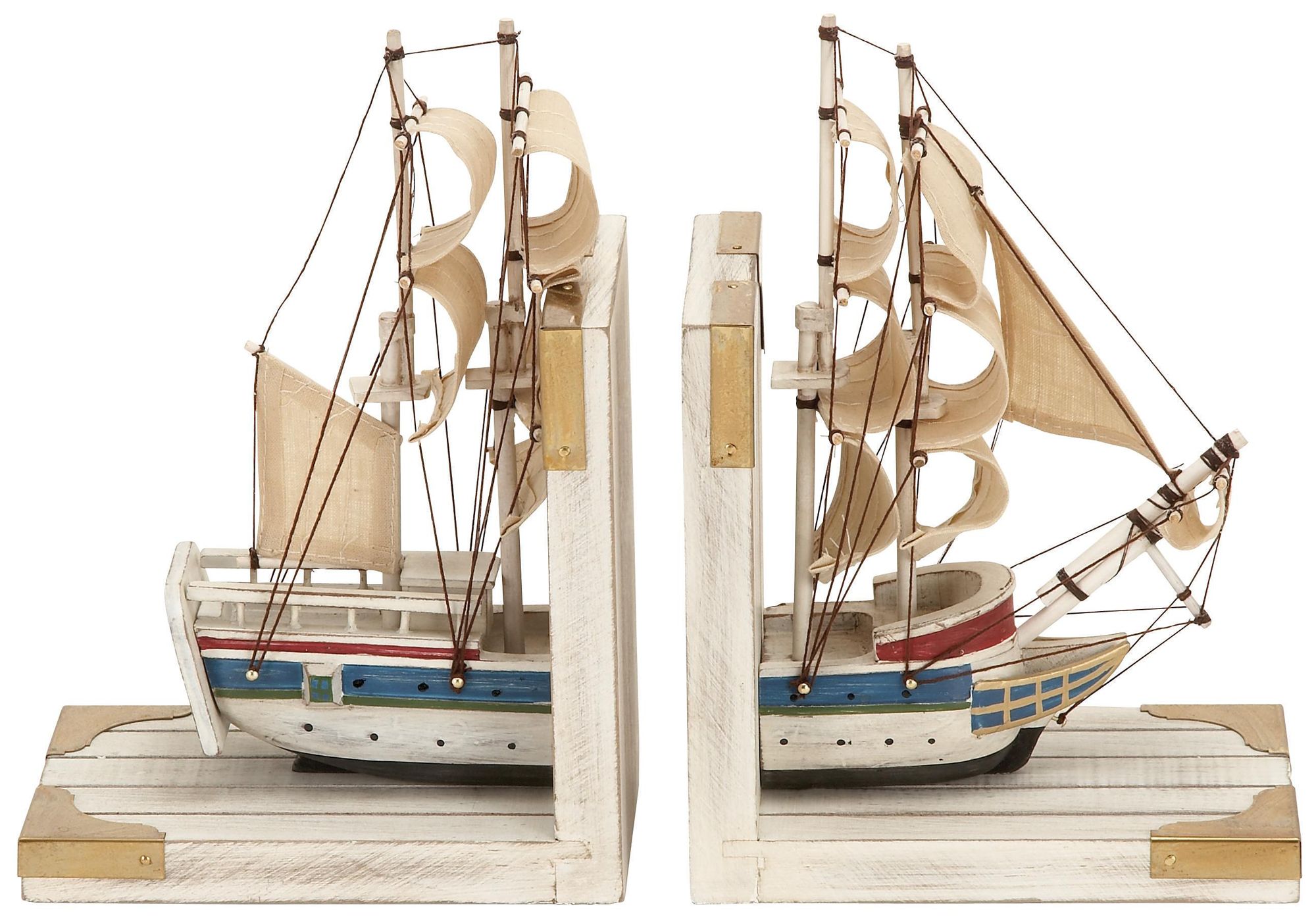 White Wood Coastal Bookends, S/2 6"W, 9"H