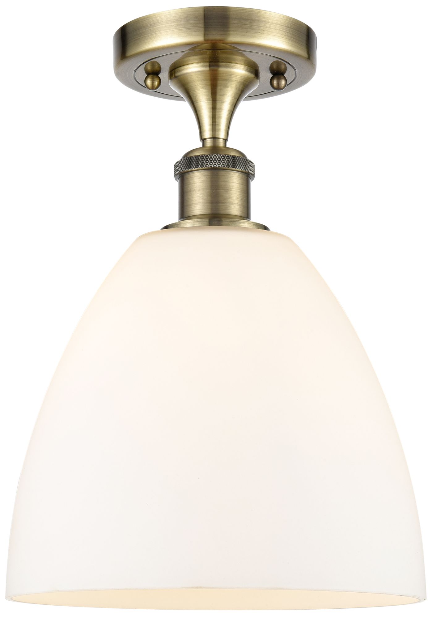 Bristol Glass 9" Semi-Flush Mount - Antique Brass - Matte White Shade