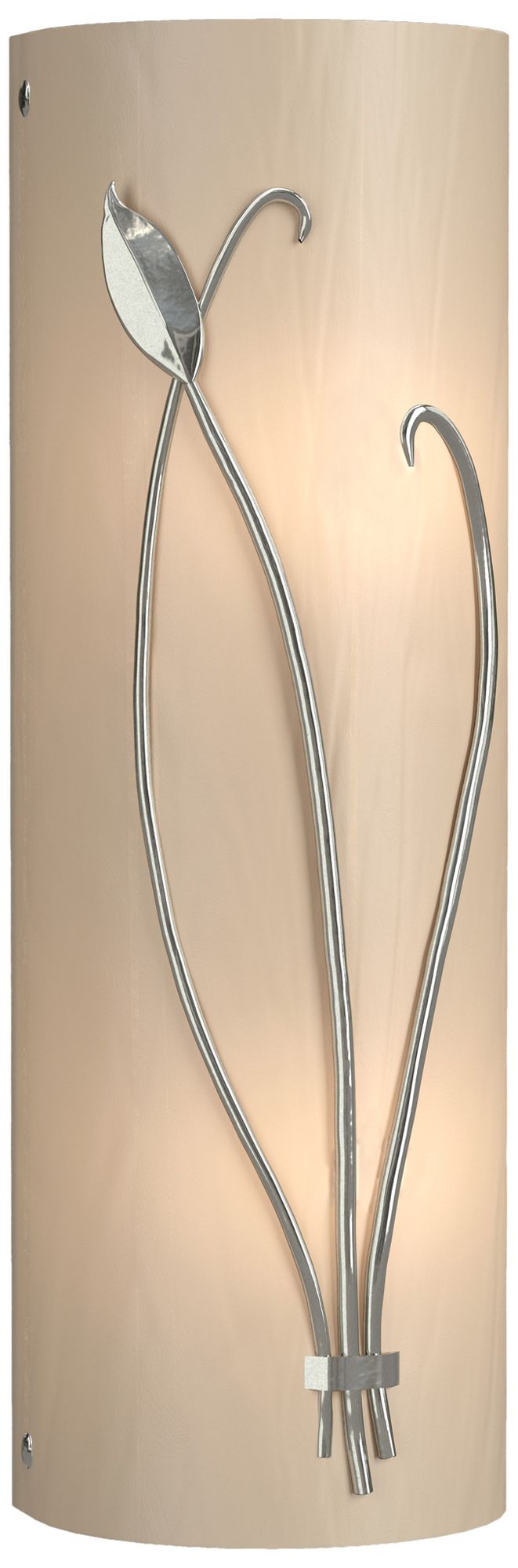 Forged Leaf and Stem 17" High Sterling Sconce With White Art Glass Sha