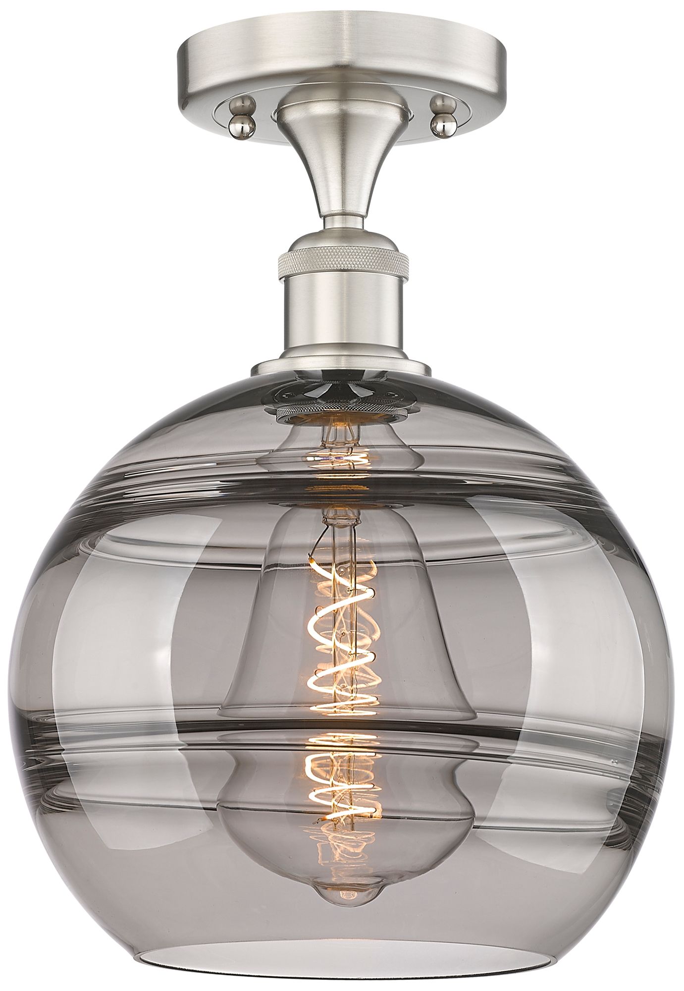 Edison Rochester 10"W Satin Nickel Semi-Flush Mount w/ Light Smoke Sha