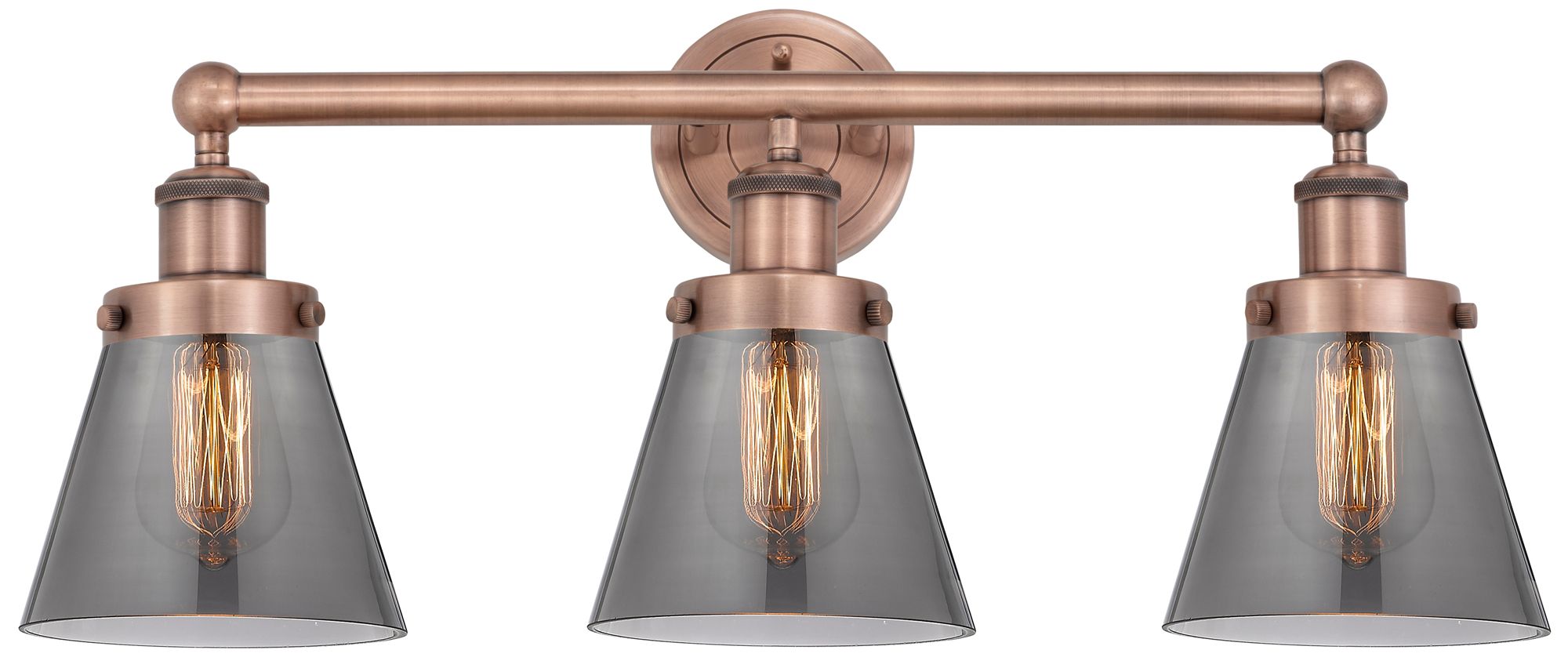 Edison Small Cone 24.5"W 3 Light Copper Bath Light With Smoke Shade