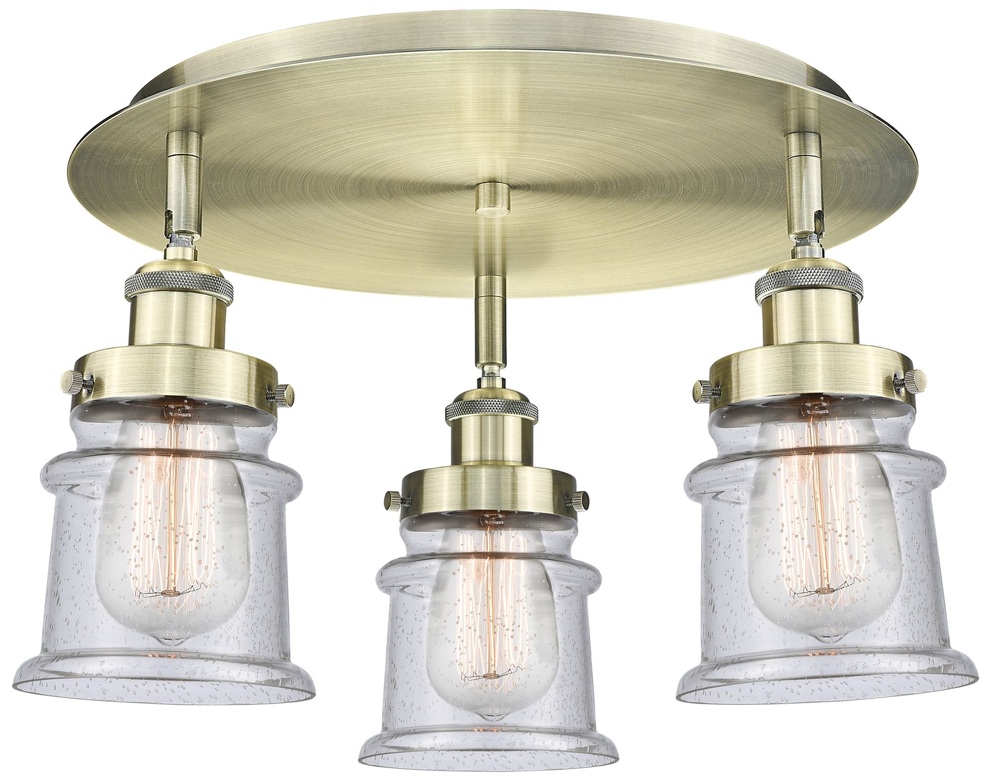 Canton 17" Wide 3 Light Antique Brass Flush Mount With Seedy Glass Sha