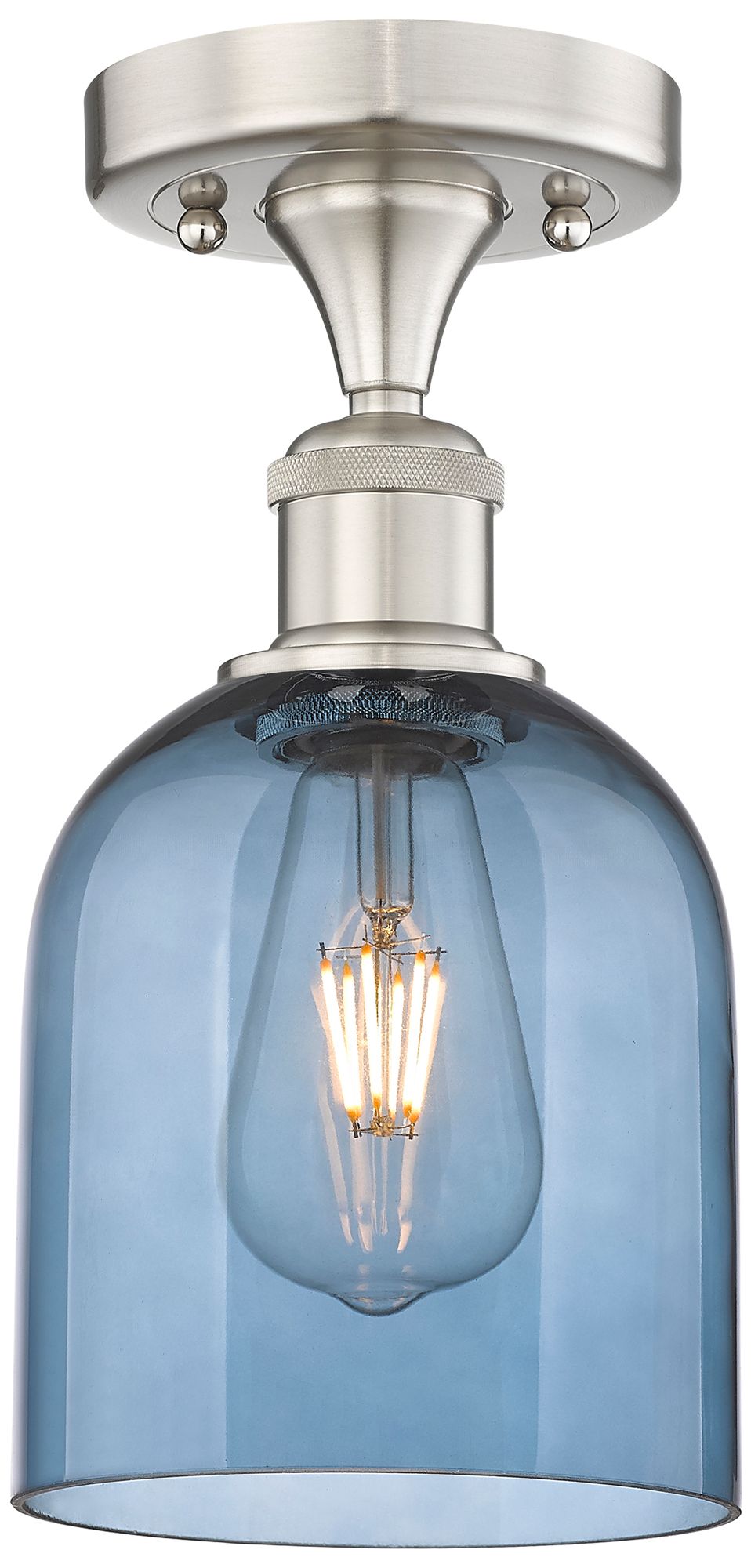 Edison Bella 5.5"W Satin Nickel Semi-Flush Mount w/ Princess Blue Shad