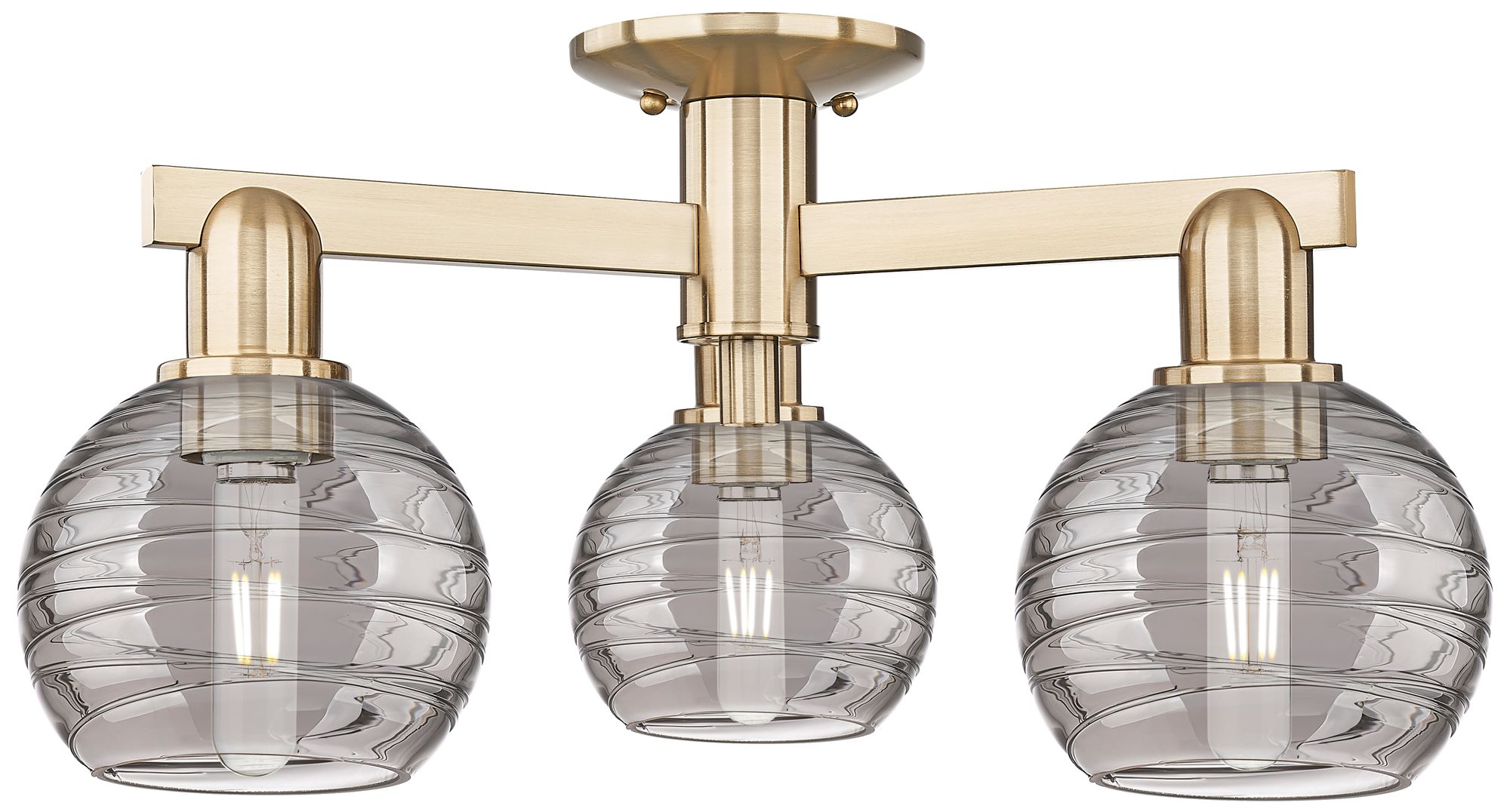 Athens Deco Swirl 23.25"W 3-Lt Bronze Semi.Flush w/ Smoke Swirl Shade