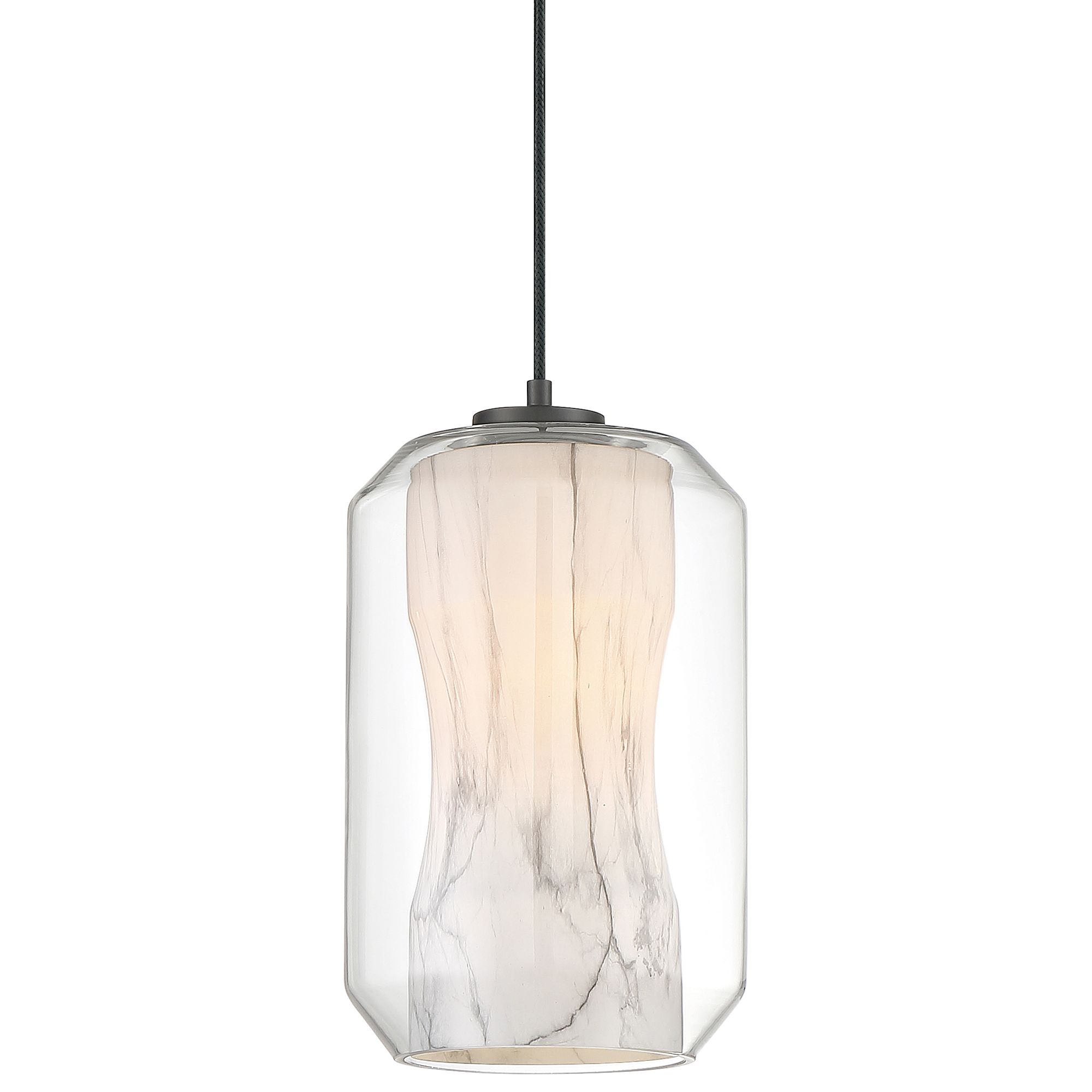 I-Biza - E26 LED Cylinder Pendant - Black Finish - White Marble Glass