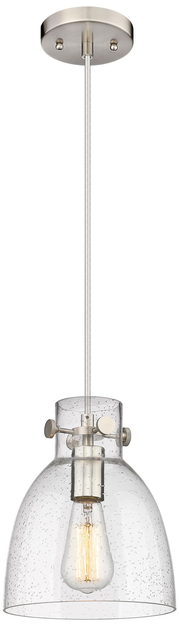 Newton Bell 8" Wide Satin Nickel Cord Hung Pendant With Seedy Glass Sh