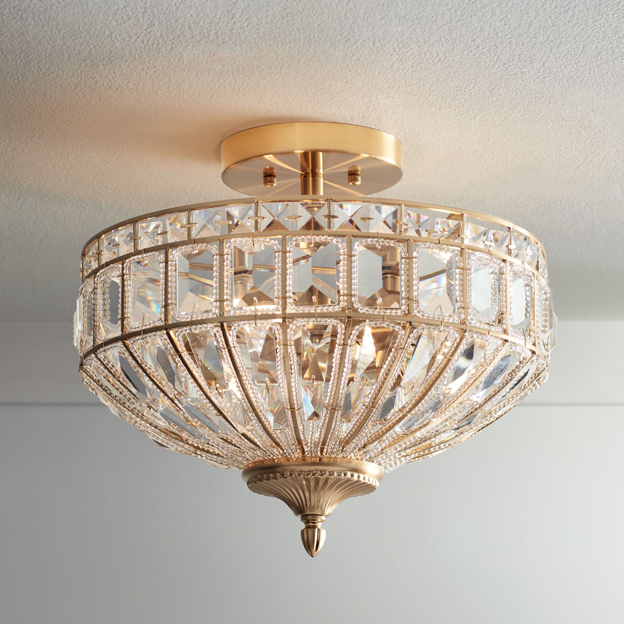 Vienna Full Spectrum Ibeza 15" Gold and Crystal Semi-Flushmount Light