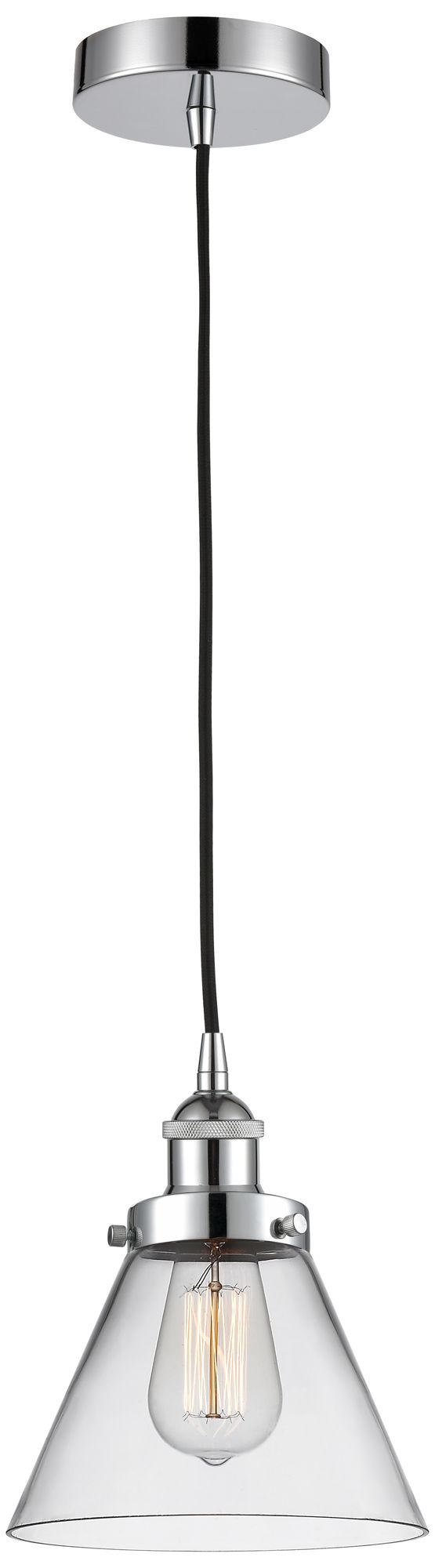 Cone 8" Polished Chrome Mini Pendant w/ Clear Shade