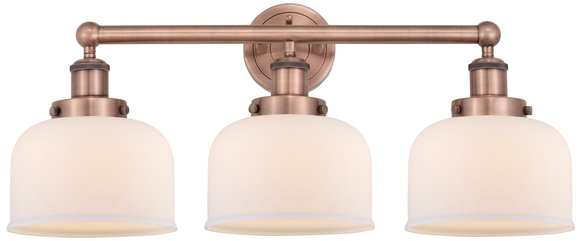 Edison Large Bell 24.5"W 3 Light Antique Copper Bath Light With White